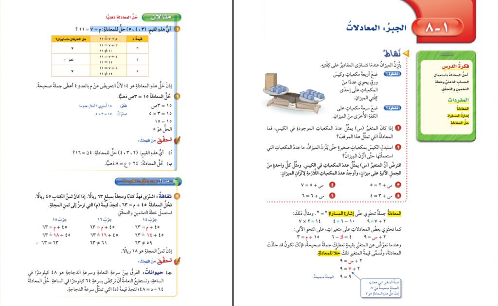 الدرس الذي بدأنا (أنا والمعلمة) كتابة خطة له كان درس المعادلات للصف السادس