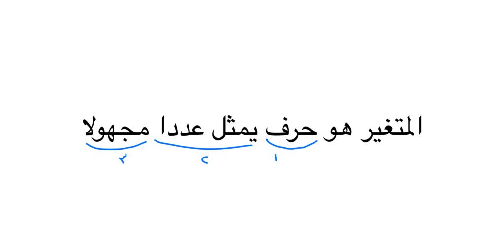 اخترنا هذه الكلمات: المتغير هو حرف يمثل عددا مجهولا