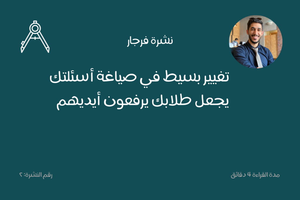 تغيير بسيط في صياغة أسئلتك يجعل طلابك يرفعون أيديهم قراءة المزيد »