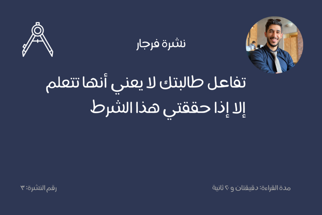 تفاعل طالبتك لا يعني أنها تتعلم إلا إذا حققتي هذا الشرط